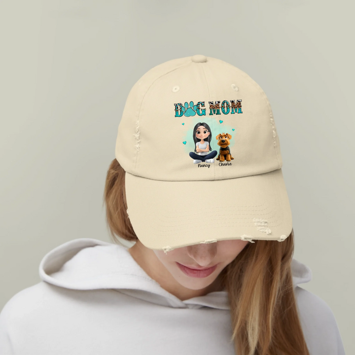 Personalized Blue Leopard Dog Mom Custom Unisex Distressed Cap