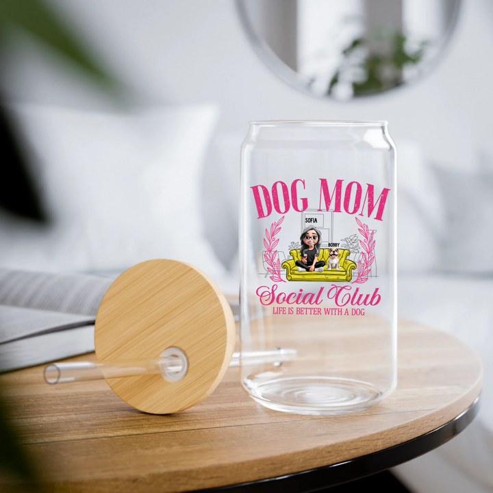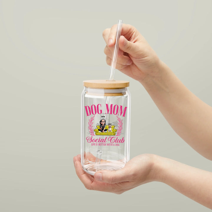 Personalized Dog Mom Social Club Custom 16oz Sipper Glass
