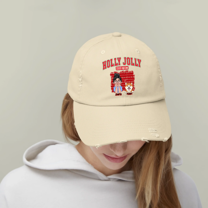 Personalized Holly Jolly Dog Mom Custom Unisex Distressed Cap