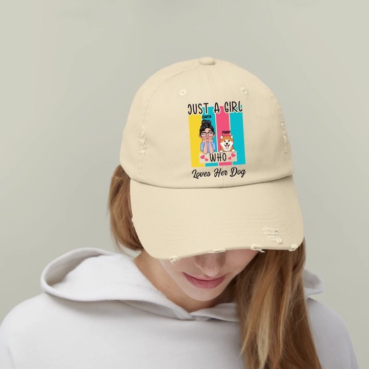 Personalized Just a Girl Who Loves Her Dogs Custom Unisex Distressed Cap