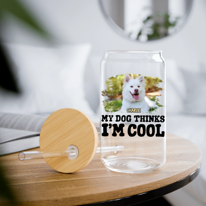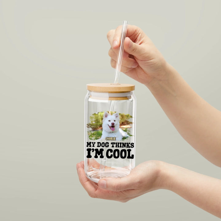 Personalized My Dog Thinks Iโm Cool Custom 16oz Sipper Glass