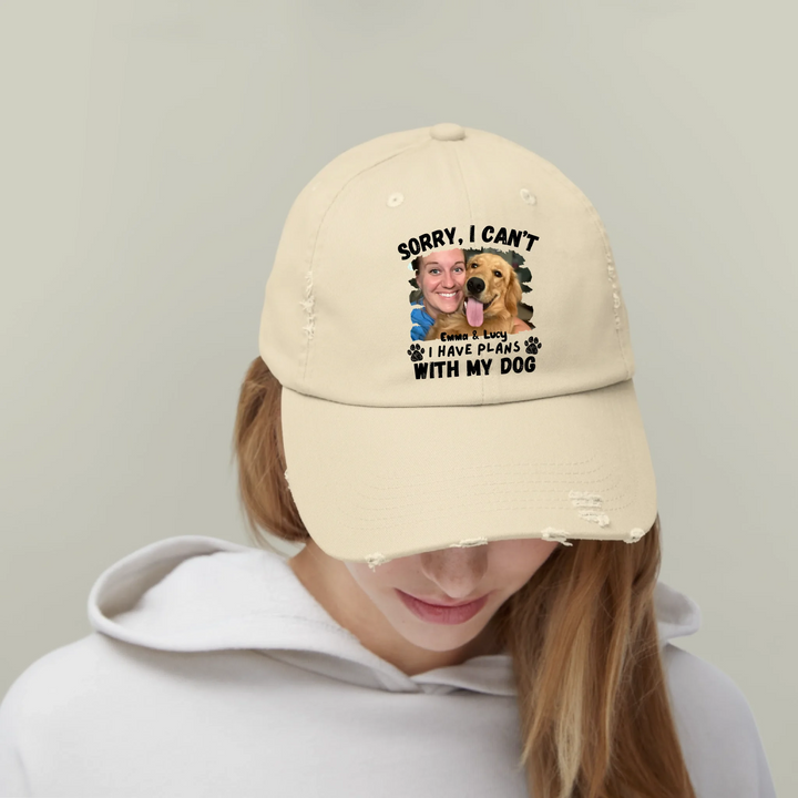 Personalized Sorry I Can't I Have Plans With My Dog Unisex Distressed Cap